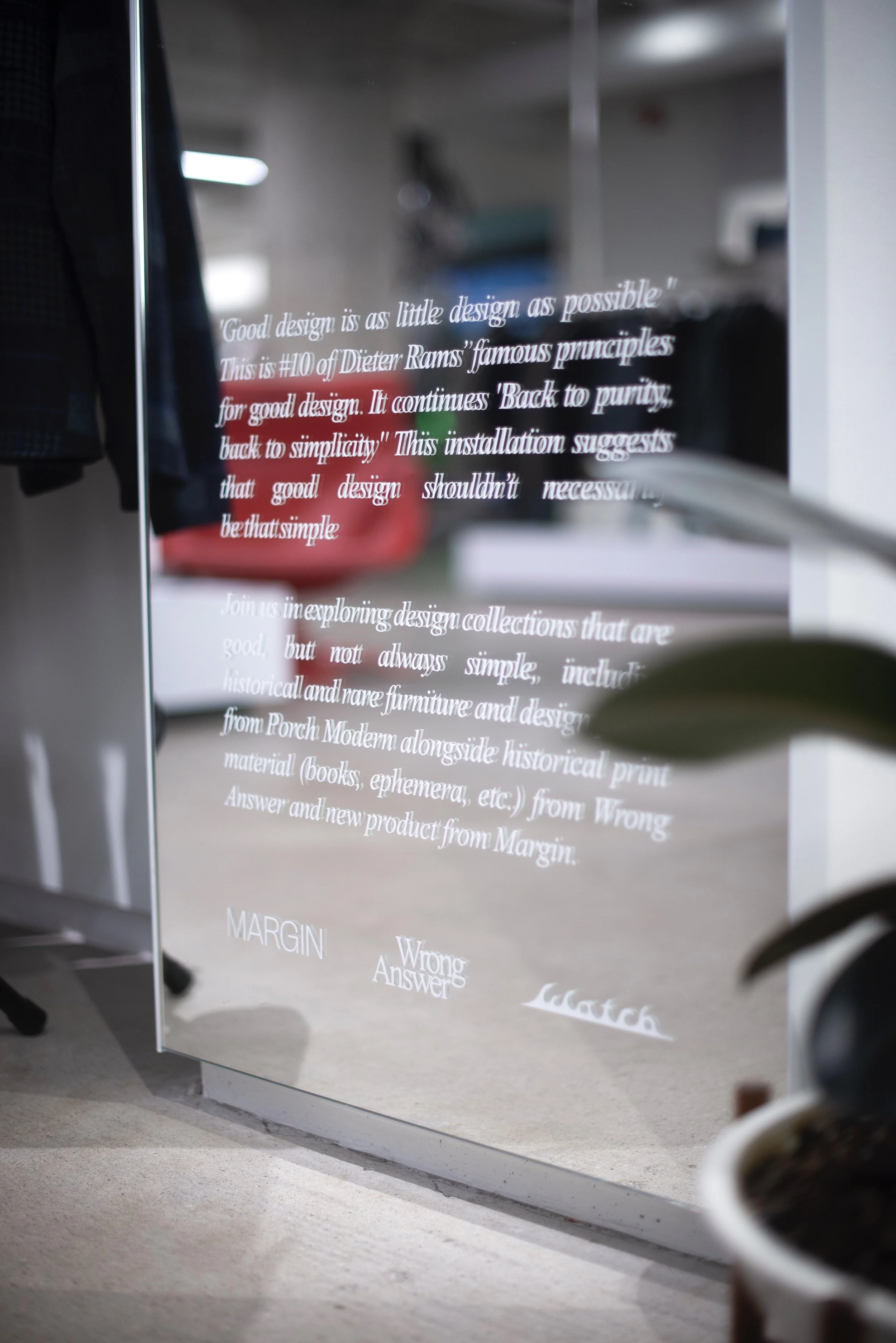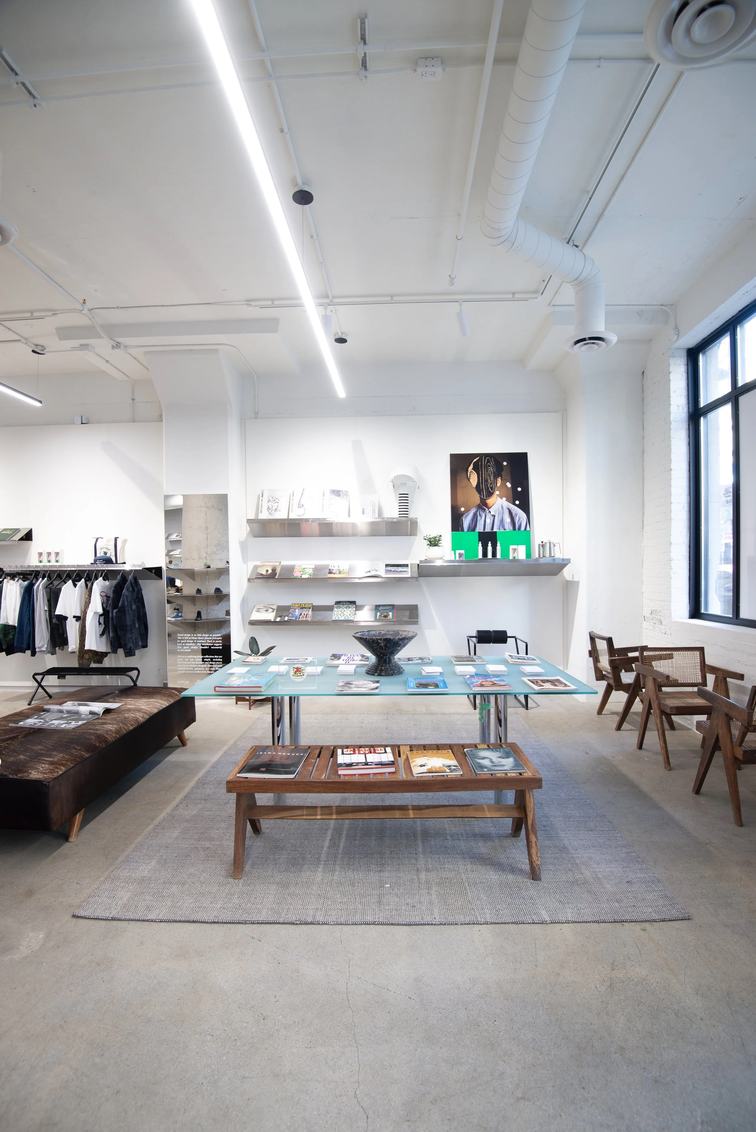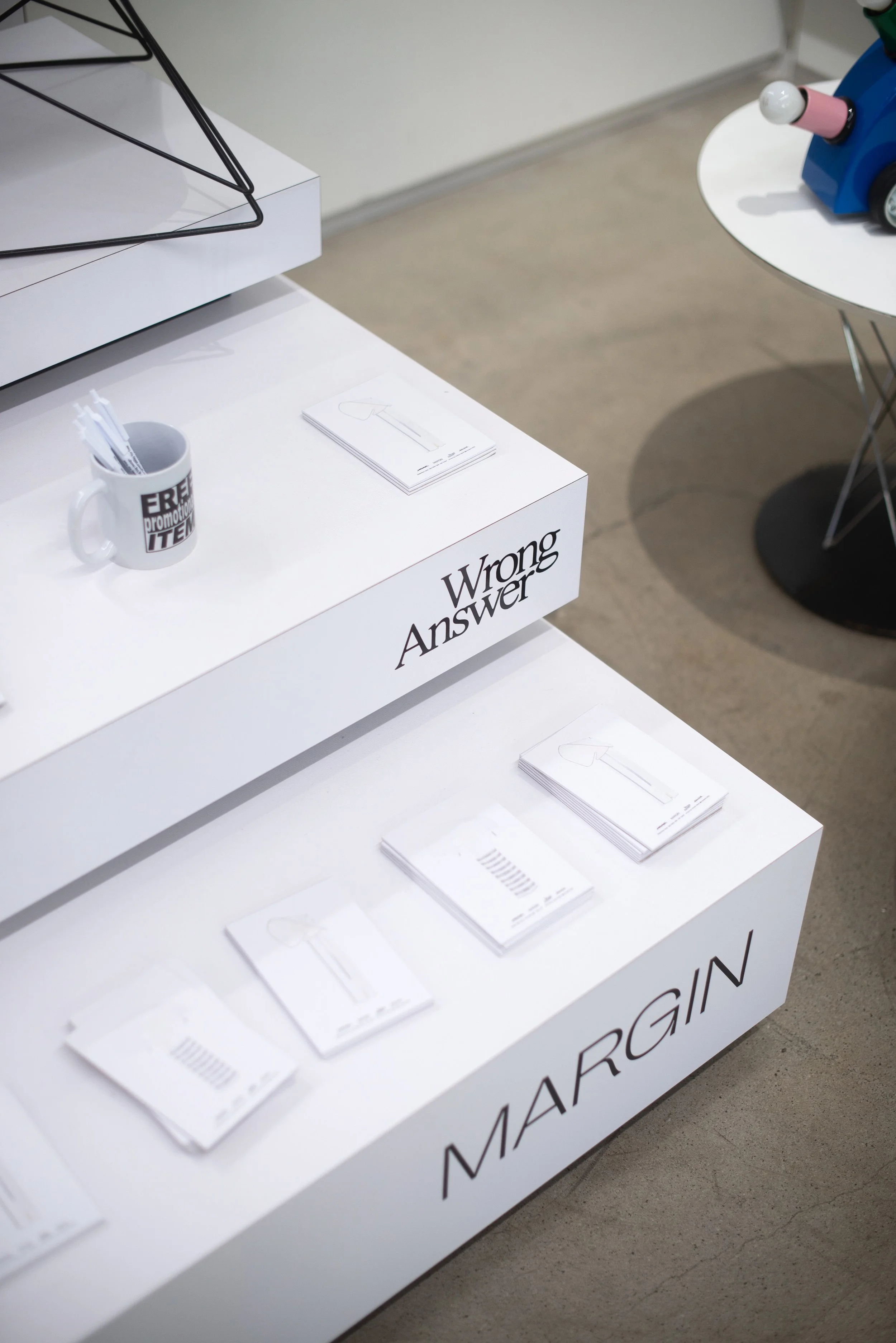 This installation invited shoppers to explore design collections that are good, but not always simple, including historical and rare furniture and design pieces alongside historical print material (books, ephemera, etc.) from Wrong Answer and new product from Margin.